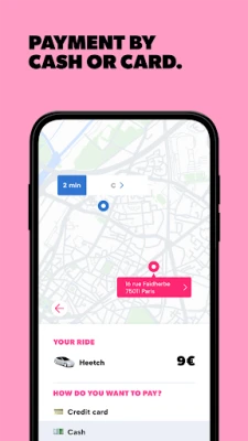 Heetch lets you pay cash without the hassle of having to save your credit card beforehand. Making splitting the cost with friends easy. No cash? Heetch works with all major credit, debit, and prepaid cards in France, Belgium and Malta. Add a new payment method, and select your favorite before you request a ride.