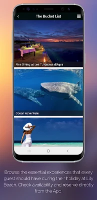 Explore Lily Beach and all of its facilities and services, and request to book your experiences directly from your device before and during your visit.