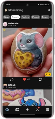 Stonehiding is a game and application based on painting, hiding and finding stones in the real world. Each stone has its own unique code that users create within the application.